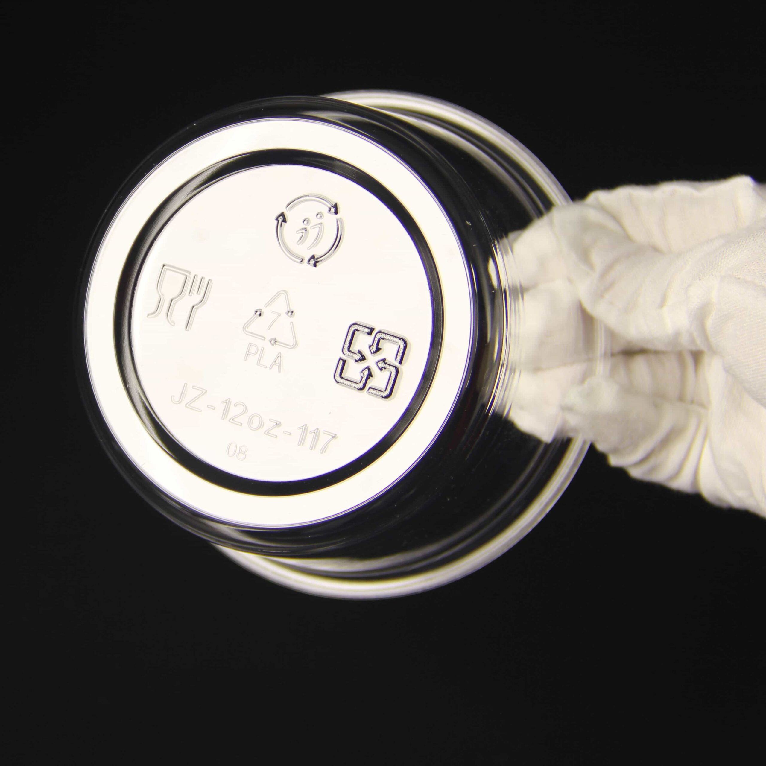 The 117B-12oz PLA Cup is made using advanced thermoforming technology. In this process, PLA sheets are heated and formed into the cup’s shape. The thermoforming technique ensures that each cup maintains a high level of clarity, smooth edges, and durability. This process allows us to create a high-quality product with excellent transparency, while also accommodating custom designs for branding purposes.