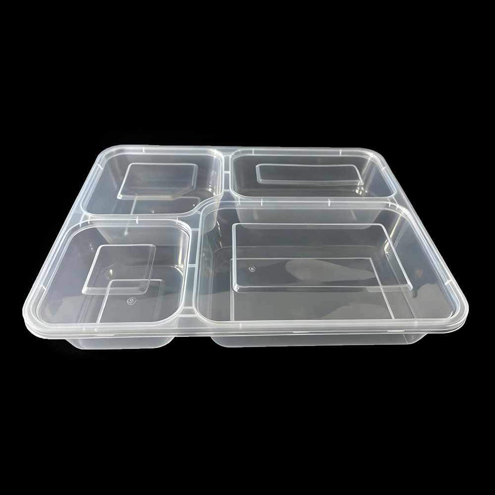 | 5 | 4-Compartment Rectangle Food Container | RC-4C | PP | 226*166*35 | Transparent / Black | 150 |