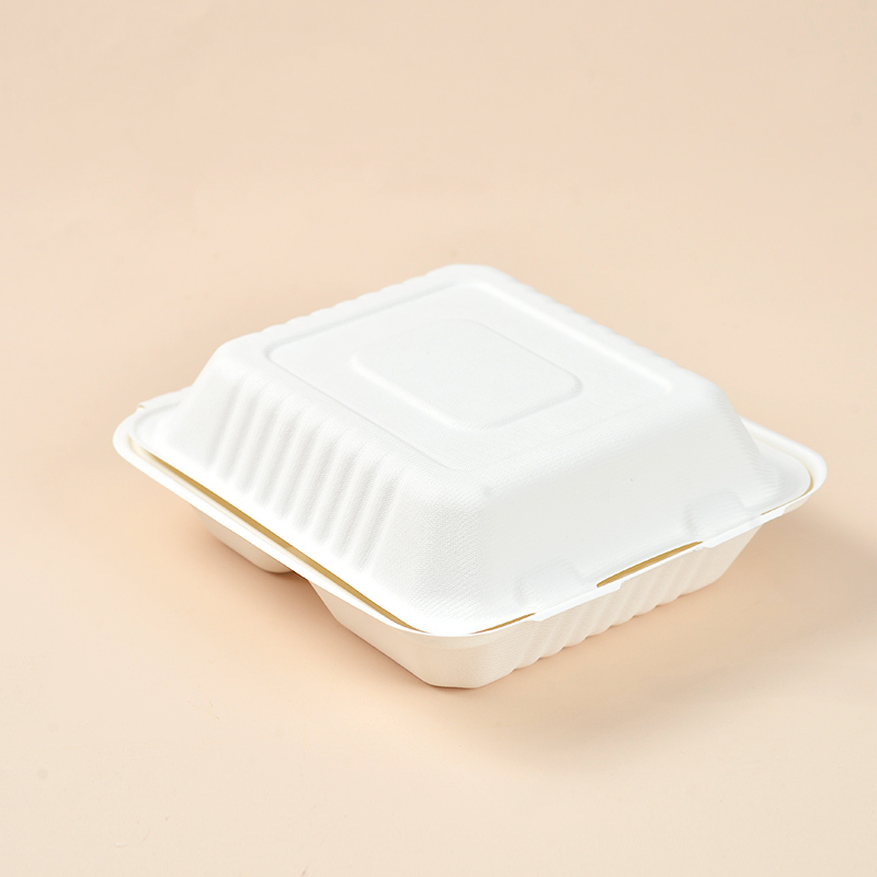 The PCT083 8-Inch 3-Compartment Clamshell is crafted from sugarcane bagasse, a biodegradable and compostable material that offers an eco-friendly alternative to traditional plastic packaging. Bagasse is a renewable resource made from the fibers left after sugarcane is processed, making it an excellent choice for sustainable food packaging. The material is non-toxic and safe for food contact, meeting FDA and EU food safety regulations. It is suitable for a variety of food types, from hot meals to cold salads, ensuring safe and hygienic storage.