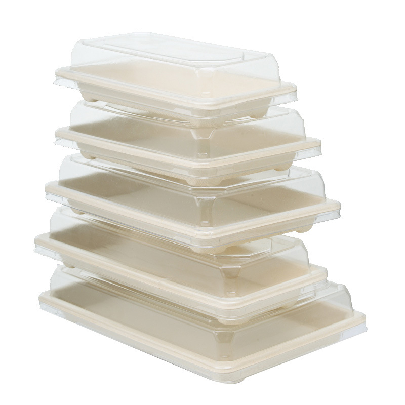 Crafted from 100% natural sugarcane bagasse, this sushi tray is an environmentally responsible choice that combines elegant aesthetics, reliable strength, and excellent food safety. It’s ideal for sushi, sashimi, bento sets, desserts, and takeaway meals. Each tray is paired with a clear PET lid to ensure freshness and visual appeal while maintaining eco-conscious performance.