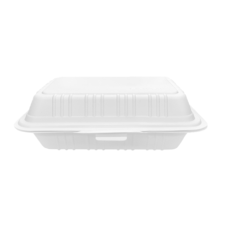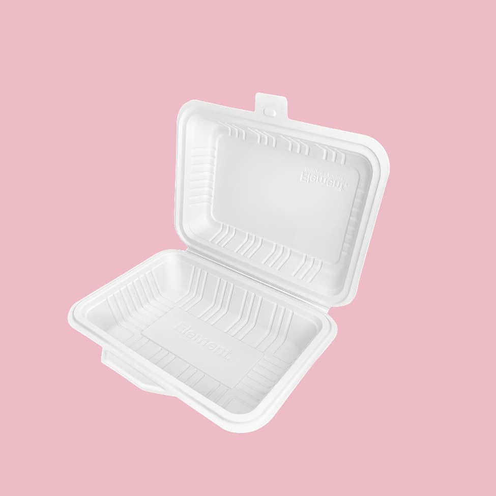 The LB-85 8 inch × 5 inch Clamshell is made from biodegradable cornstarch, a plant-based alternative to petroleum-based plastics. This material is compostable, reducing the environmental impact that traditional plastics have on our planet. Unlike conventional plastic packaging, cornstarch decomposes naturally without leaving harmful residues, offering a more sustainable option for both businesses and consumers.