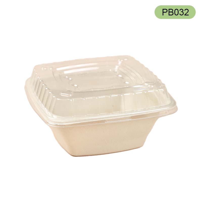 The PB032 Bagasse Square Bowl is an eco-friendly, 100% biodegradable food container made from natural sugarcane fiber. With a strong structure, elegant design, and excellent heat resistance, it’s perfect for restaurants, catering, takeout, and supermarkets. Optional PET and bagasse lids ensure secure and sustainable food packaging for all types of meals.