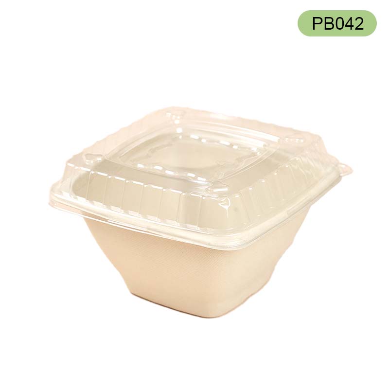 The PB042 Bagasse Square Bowl is an eco-friendly, 100% biodegradable food container made from natural sugarcane fiber. With a strong structure, elegant design, and excellent heat resistance, it’s perfect for restaurants, catering, takeout, and supermarkets. Optional PET and bagasse lids ensure secure and sustainable food packaging for all types of meals.