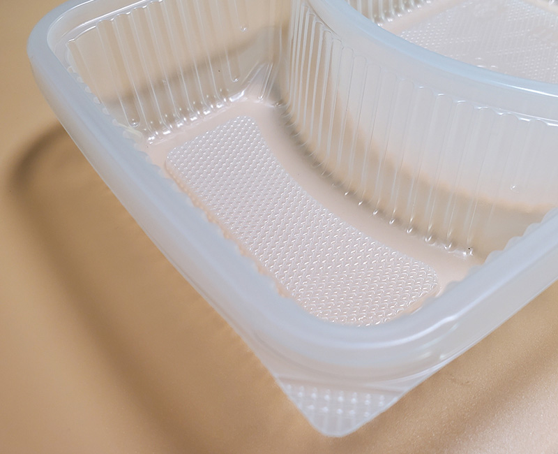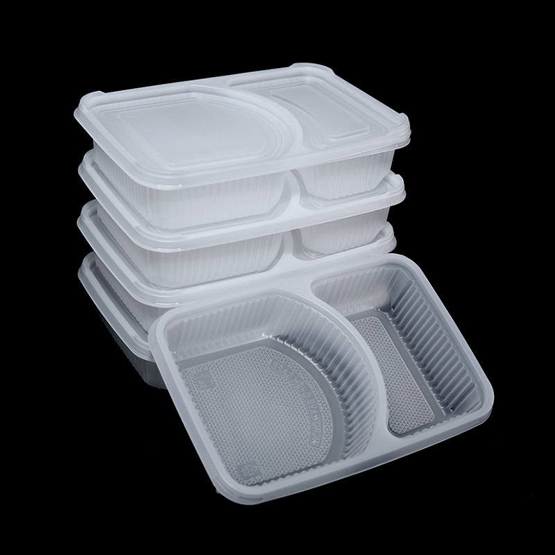 We use vacuum thermoforming (or vacuum forming) to create the PP Two-Compartment Lunch Box. In this process: