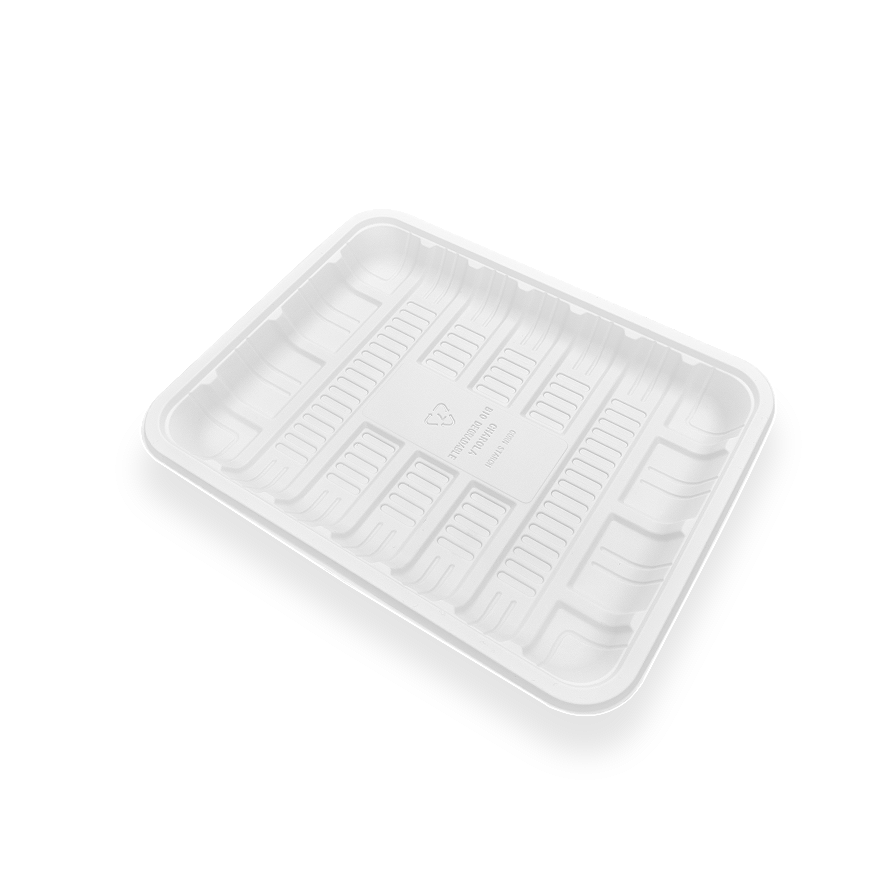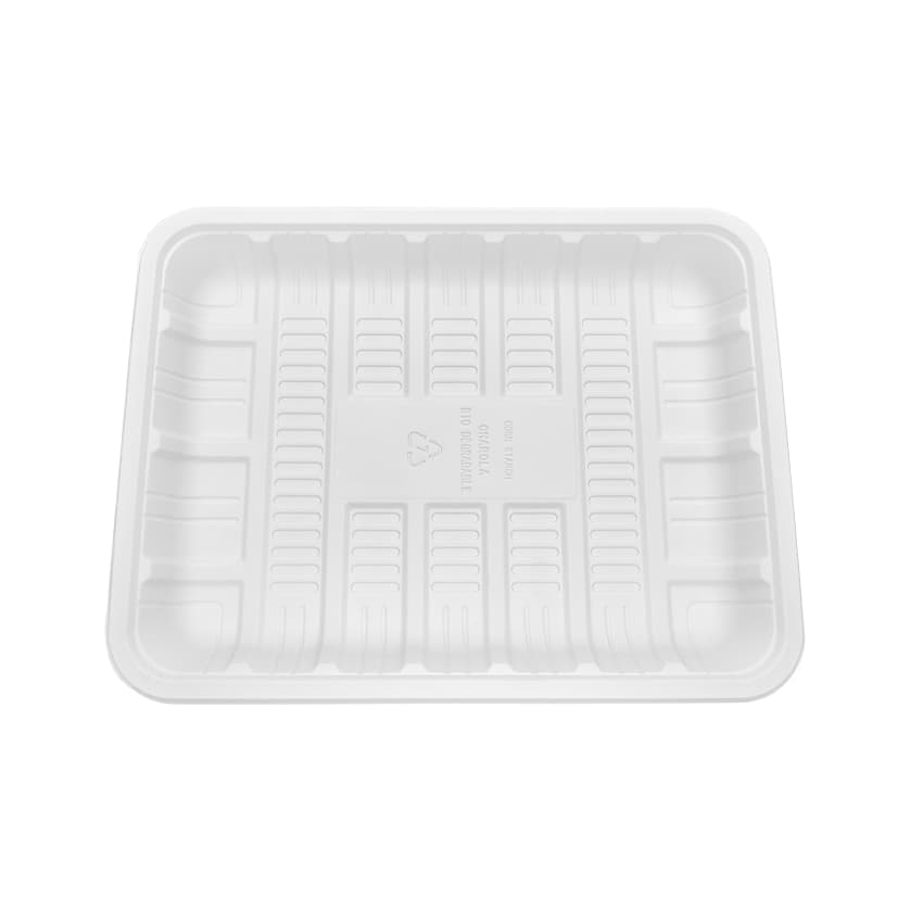 Biodegradable & Compostable: Made from 100% plant-based materials, the TP-235 tray is fully decomposable in industrial composting environments.