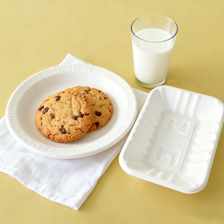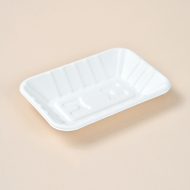 Under industrial composting conditions, the tray fully decomposes within 90–180 days, breaking down into natural elements like water, carbon dioxide, and organic matter without leaving microplastics.