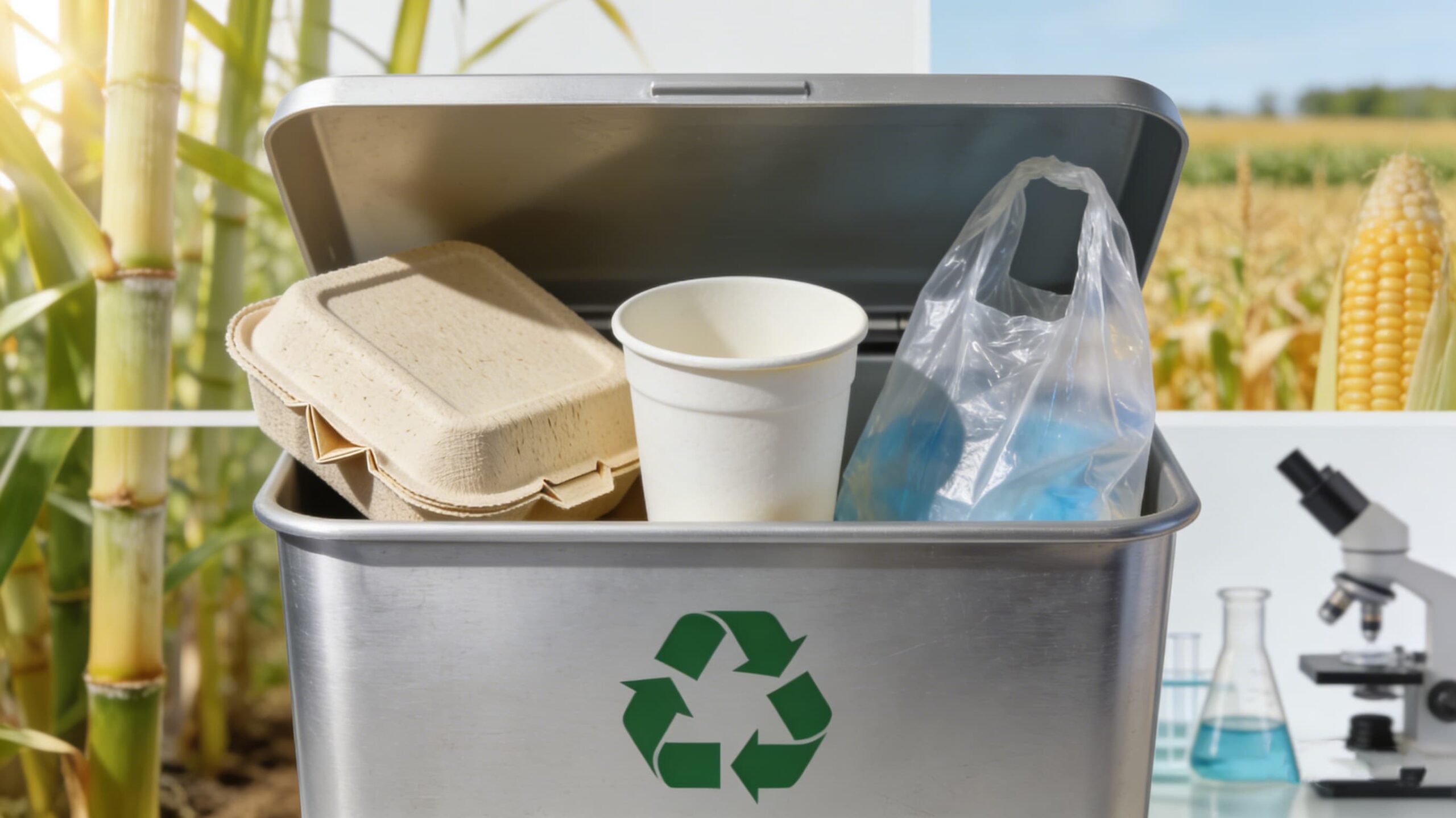 Can Sugarcane Bagasse, Corn Starch, and PLA Food Packaging Go into the Same Recycling Stream?